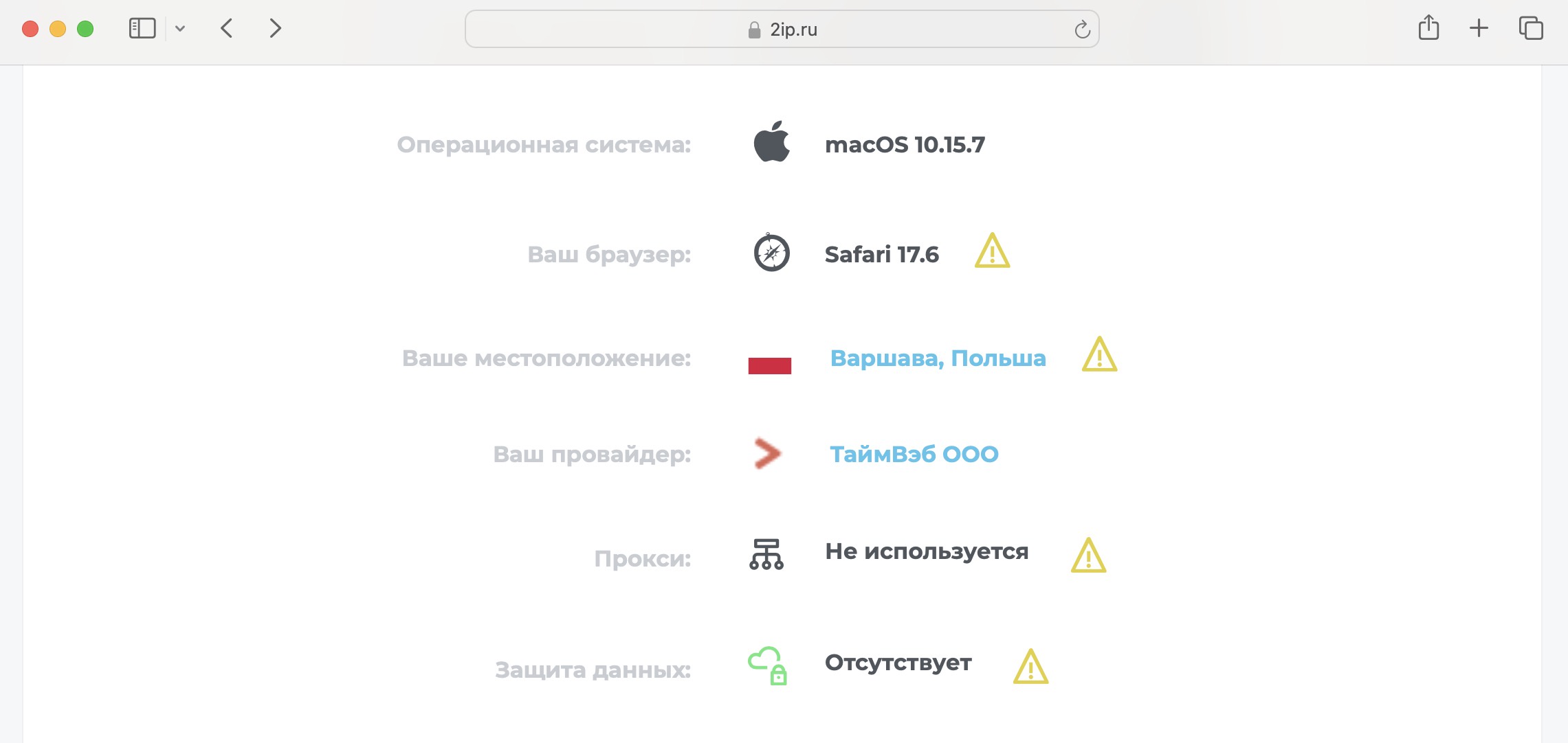 Заходим в любой браузер на сайт 2ip.ru и видим новое местоположение