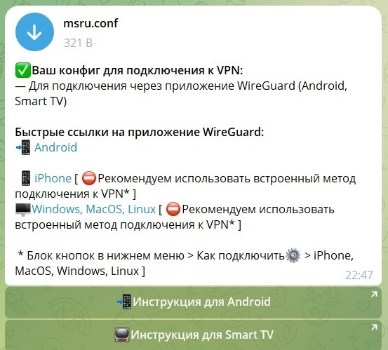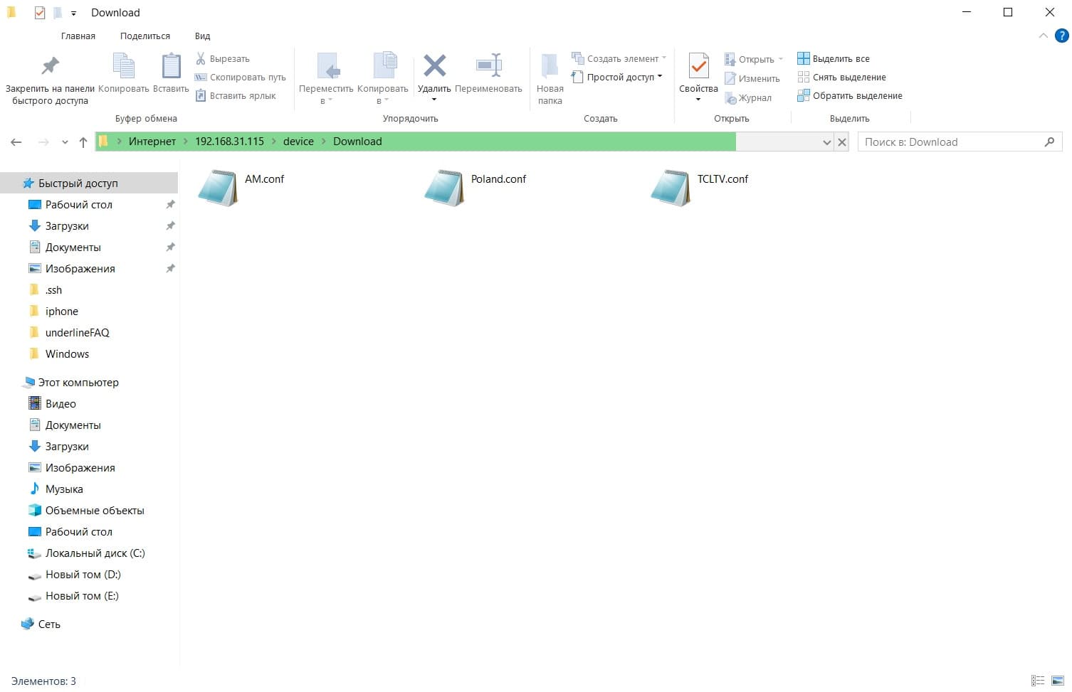 Шаг 5. Заходим в папку device > Download и помещаем наш ранее загруженный из Телеграм бота .conf файл