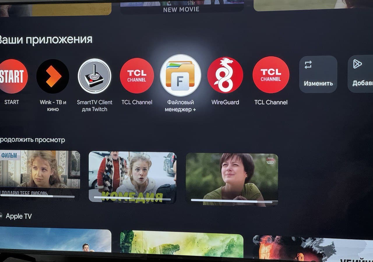 Шаг 2. Заходим в Google Play или любой Market вашего Smart TV и загружаем два приложения: (1) WireGuard - VPN клиент, в него мы загрузим конфигурацию из Телеграм бота (2) Файловый медеджер - через него мы загрузим с нашего компьютера .conf файл в Ваш Smart TV.