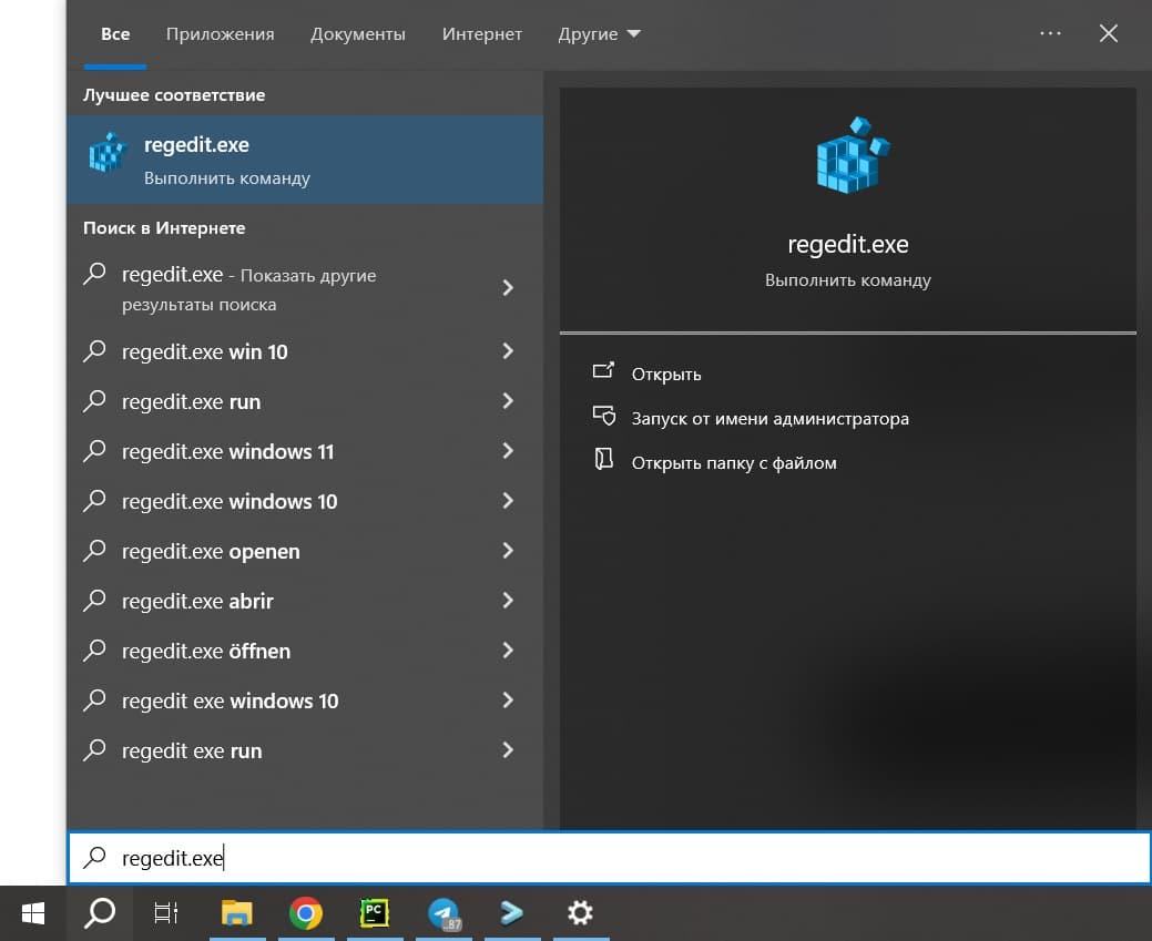 Шаг 4. Добавьте настройки в реестр Windows, для этого в поиске введите regedit.exe
