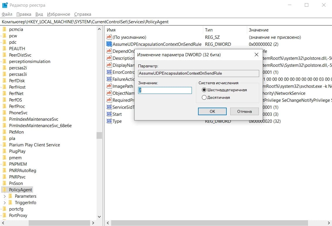 Шаг 5. Перейдите в ветку: (1) Для Windows 11, 10, 8.1, 7 и Windows Server 2016,2012R2,2008R2 — HKEY_LOCAL_MACHINE\SYSTEM\CurrentControlSet\Services\PolicyAgent Для Windows XP/Windows Server 2003 — HKEY_LOCAL_MACHINE\SYSTEM\CurrentControlSet\Services\IPSec